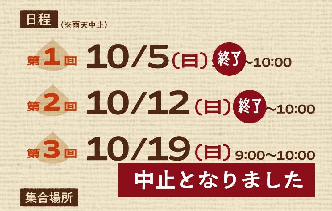 10月19日(日)に開催を予定しておりました第3回「栗ひろい」につきましては、